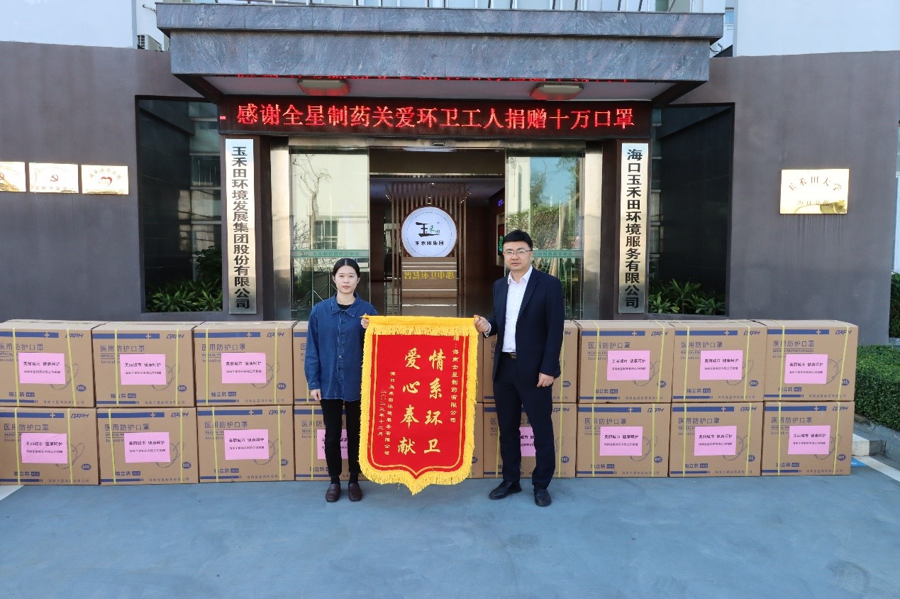 海南全星制藥有限公司向??谑协h衛工人贈送35萬個醫用口罩